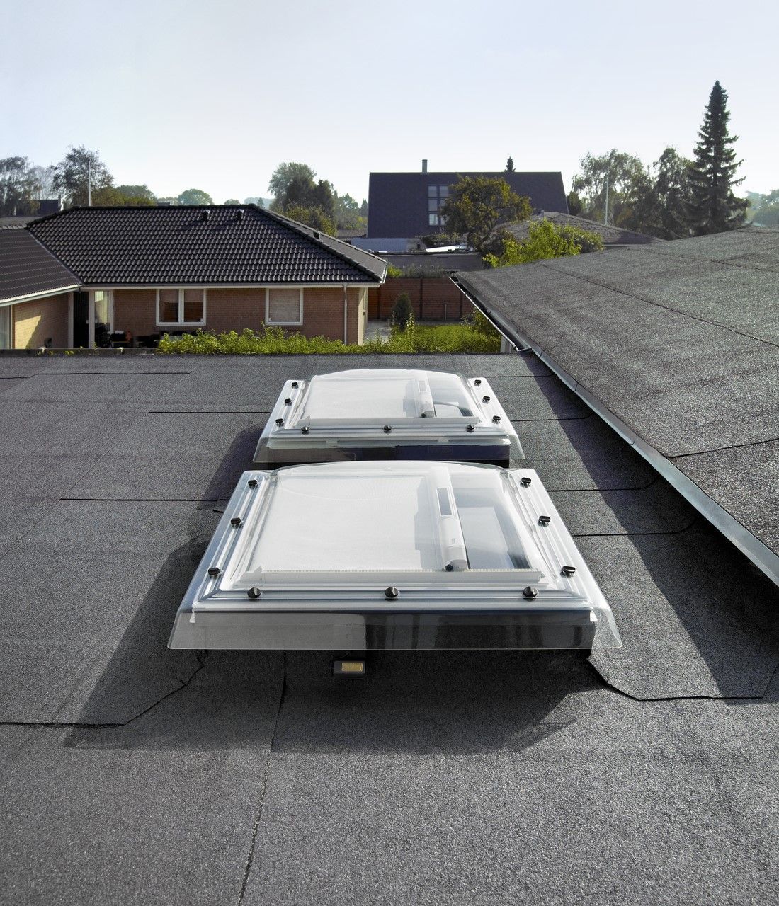 La cúpula acrílica VELUX está fabricada en polimetilmetacrilato (PMMA) de alta resistencia al impacto y gran durabilidad. Disfruta de las vistas con la cúpula transparente o mantén la privacidad con la cúpula translúcida. El marco de la ventana de cubierta plana se compone de PVC con aislamiento de poliestireno y un doble acristalamiento. Elige entre la ventana de cubierta plana eléctrica o manual con barra telescópica CVP o incluso de la ventana fija sin apertura CFP. • Disponible en superficie transparente o translúcida • Diseño curvo para evitar el depósito de suciedad sobre la cúpula